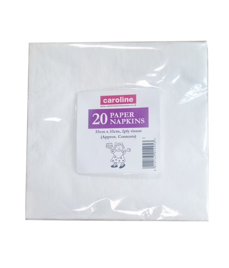 CAROLINE WHT 2PLY 33CM NAPKINS 50PK